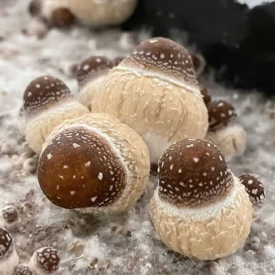 The K.S.S.S Peyote Cubensis is a unique mushroom strain with a cinnamon-brown cap that transitions to pale orange as it matures. Its bulbous appearance, especially in the cap, sets it apart. Explore its intriguing features and add it to your collection!